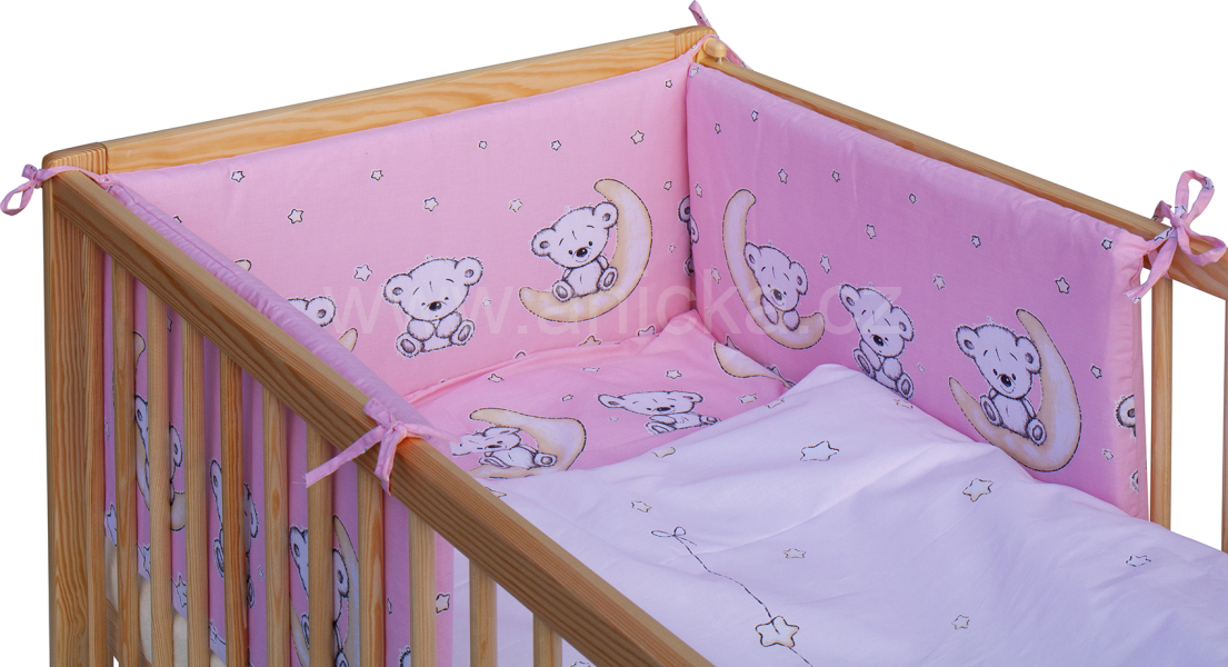 Dětská postýlka s vyndavacími příčkami - přírodní ECO - 120x60 cm s kompletní výbavou Toro Barva soupravy: Toro růžová